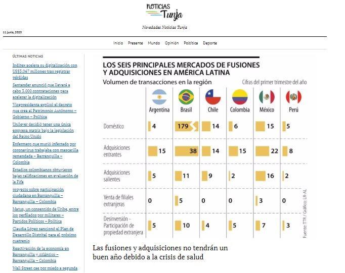 El mercado de fusiones y adquisiciones (M&A) en el mundo está sintiendo el impacto que tendrá la pandemia en sus resultados. Así lo muestra un análisis que compartió Transactional Track Record (TTR) en el que se señala que “algunos de los dealmakers de la primera entrega de ‘Transactional Impact Monitor’ han previsto un efecto inmediato en el segmento de las Fusiones y Adquisiciones en Colombia”.