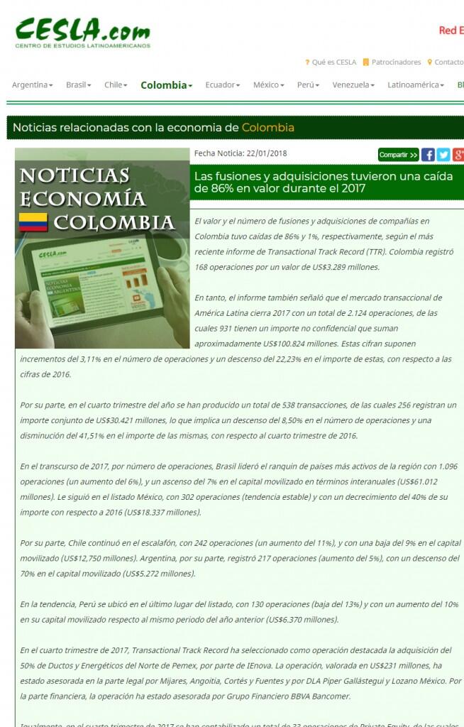 En tanto, el informe también señaló que el mercado transaccional de América Latina cierra 2017 con un total de 2.124 operaciones, de las cuales 931 tienen un importe no confidencial que suman aproximadamente US$100.824 millones. Estas cifran suponen incrementos del 3,11% en el número de operaciones y un descenso del 22,23% en el importe de estas, con respecto a las cifras de 2016.