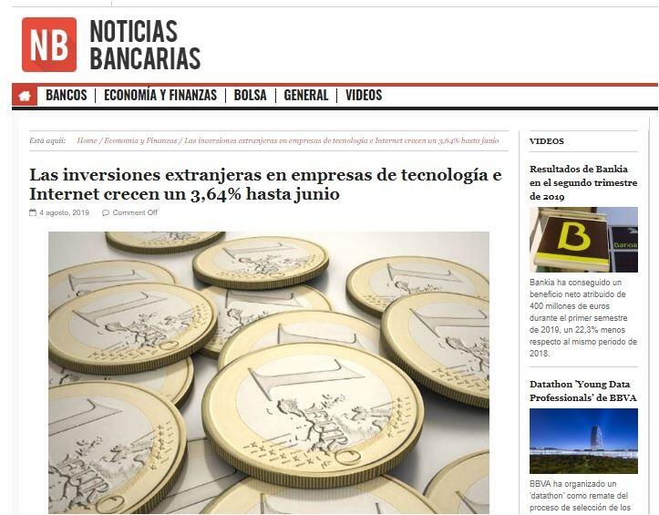 En un comunicado, la plataforma tecnológica financiera premium señala que estos datos destacan que los sectores de tecnología e Internet han incrementado su interés por el mercado transaccional ibérico en los seis primeros meses de 2019 y que las empresas dedicadas al mismo son las que más atraen inversiones extranjeras en España.