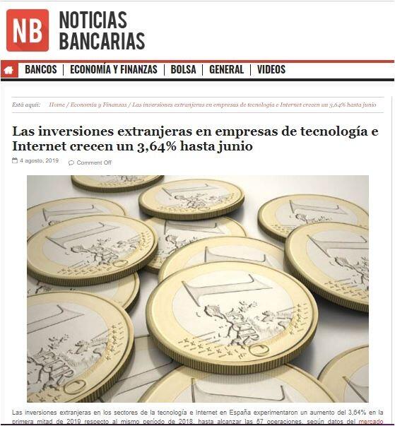 En un comunicado, la plataforma tecnológica financiera premium señala que estos datos destacan que los sectores de tecnología e Internet han incrementado su interés por el mercado transaccional ibérico en los seis primeros meses de 2019 y que las empresas dedicadas al mismo son las que más atraen inversiones extranjeras en España.