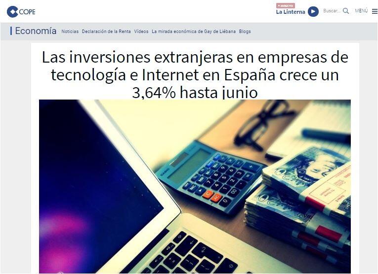 Las inversiones extranjeras en empresas de tecnología e Internet en España crece un 3,64% hasta junio