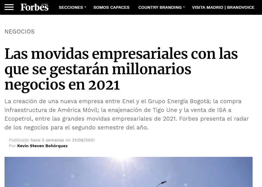 La creación de una nueva empresa entre Enel y el Grupo Energía Bogotá; la compra infraestructura de América Móvil; la enajenación de Tigo Une y la venta de ISA a Ecopetrol, entre las grandes movidas empresariales de 2021. Forbes presenta el radar de los negocios para el segundo semestre del año.