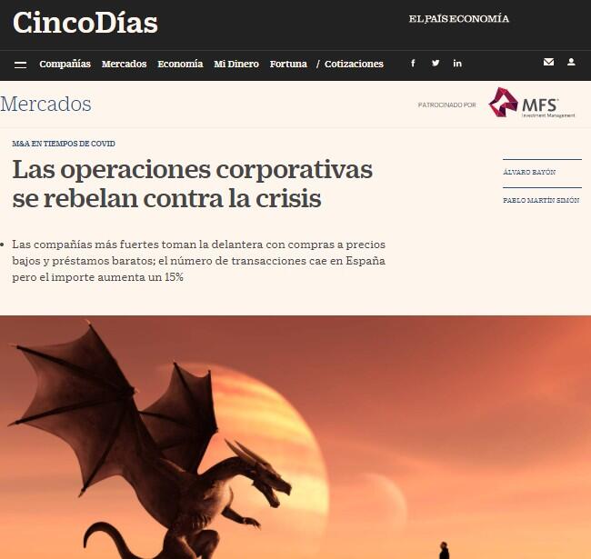 En pleno apocalipsis también queda espacio para un rayo de luz. Las perspectivas económicas –con el PIB español cayendo más de un 10% este año– dibujan un panorama que se asemeja al fin de los tiempos. Un desastre del que prácticamente solo escapan las operaciones corporativas. Cierto, en sectores concretos y con muchos asteriscos, pero están resistiendo de manera notable el ataque de la pandemia.
