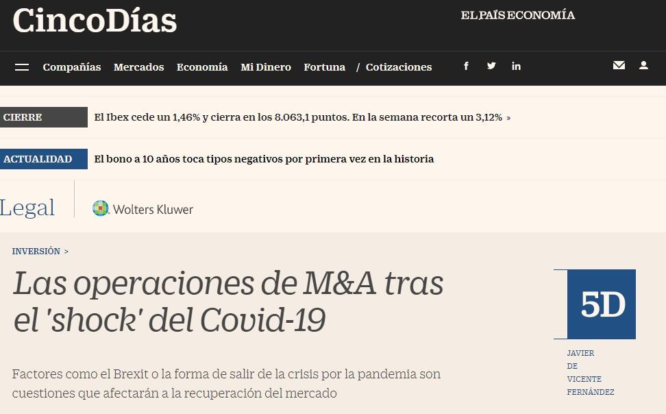 La naturaleza volátil de la crisis del Covid-19, reflejada en los distintos rebrotes de infectados en los diferentes países, supone añadir mayor incertidumbre a los inversores. No obstante, existen ciertos indicadores que permiten, con las cautelas debidas, pensar en una cierta recuperación del mercado de M&A en los próximos meses (tipos de interés en mínimos históricos, niveles altos de liquidez, empresas con problemas de liquidez o con dificultades, etc.) lo que propiciará las operaciones de M&A.