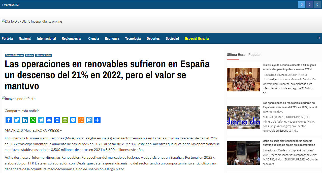 El mercado de M&A en el ámbito de las energías renovables ha sufrido una revolución en los últimos meses provocado por el conflicto entre Rusia y Ucrania y la subida de los precios de la energía en el país.