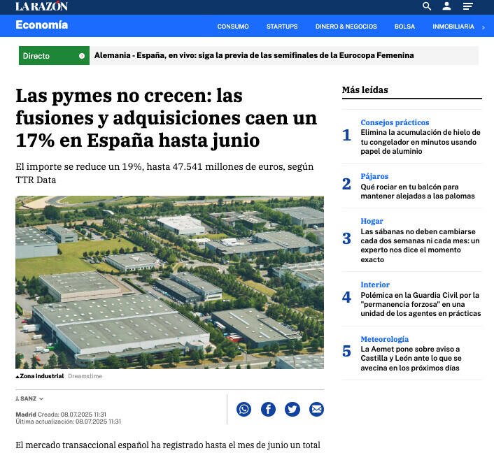 Las pymes no crecen: las fusiones y adquisiciones caen un 17% en España hasta junio