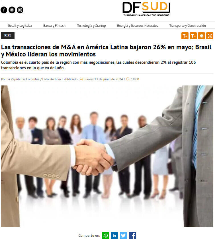 Las transacciones de M&A en América Latina bajaron 26% en mayo; Brasil y México lideran los movimientos