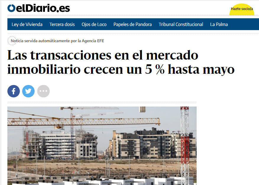 Las transacciones en el mercado inmobiliario crecen un 5 % hasta mayo