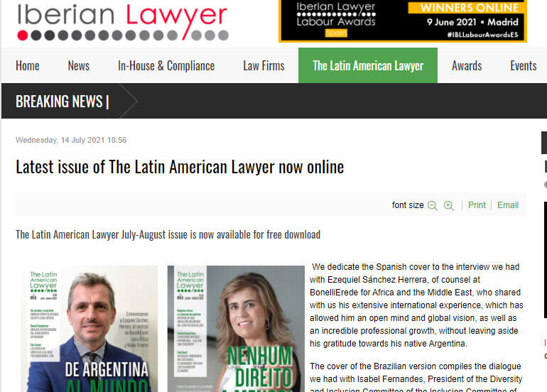 We dedicate the Spanish cover to the interview we had with Ezequiel Sánchez Herrera, of counsel at BonelliErede for Africa and the Middle East, who shared with us his extensive international experience, which has allowed him an open mind and global vision, as well as an incredible professional growth, without leaving aside his gratitude towards his native Argentina.