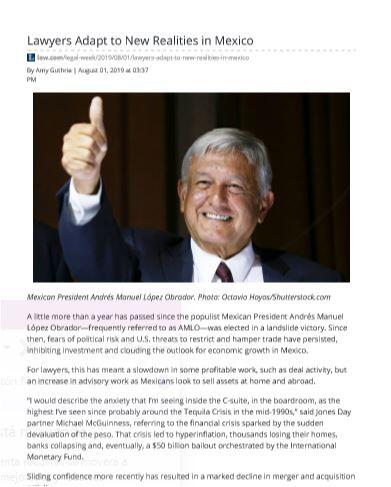 For lawyers, this has meant a slowdown in some profitable work, such as deal activity, but an increase in advisory work as Mexicans look to sell assets at home and abroad.