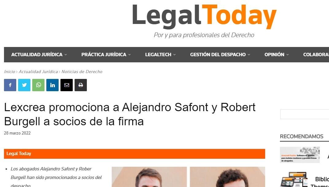Lexcrea promociona a Alejandro Safont y Robert Burgell a socios de la firma