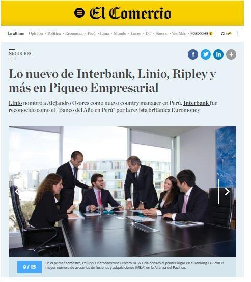 Faber-Castell presenta sus nuevos Sets de Libros “Colorea y Diviértete”. Linio, nombró a Alejandro Osores Namihas como nuevo country manager en Perú. Interbank fue reconocido por primera vez como el “Banco del Año en Perú” por la revista británica Euromoney.