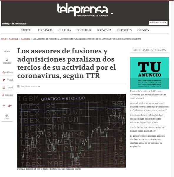 Los asesores de fusiones y adquisiciones paralizan dos tercios de su actividad por el coronavirus, según TTR