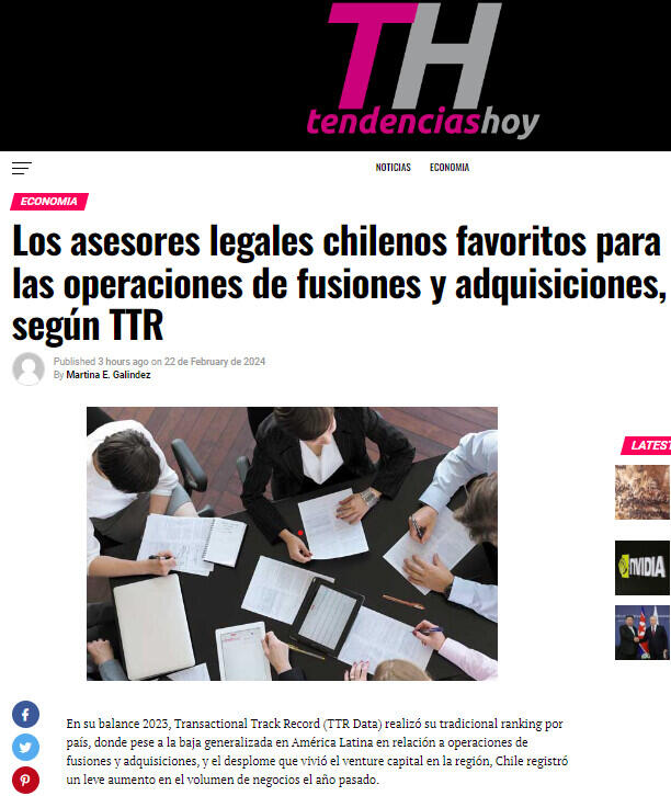 Los asesores legales chilenos favoritos para las operaciones de fusiones y adquisiciones, según TTR