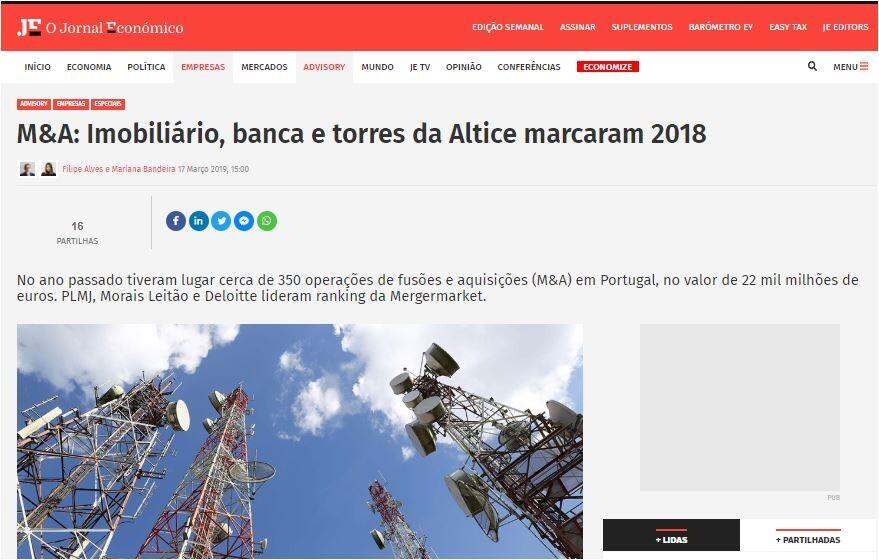 M&A: Imobiliário, banca e torres da Altice marcaram 2018