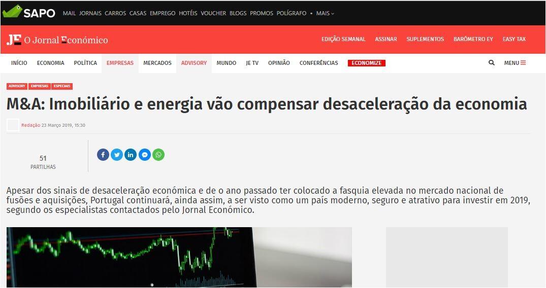 1 – A manutenção do interesse dos investidores nacionais e estrangeiros nos setores tecnológico e imobiliário, a par do aumento da visibilidade do país nos mercados estrangeiros e a existência de circunstâncias externas como o Brexit e as incertezas associadas à governação de Bolsonaro, no Brasil, levam-me a crer que o ano de 2019 será um ano com alguma movimentação no mercado das Fusões e Aquisições, em linha com o que ocorreu em 2018 e depois do boom verificado no ano anterior.