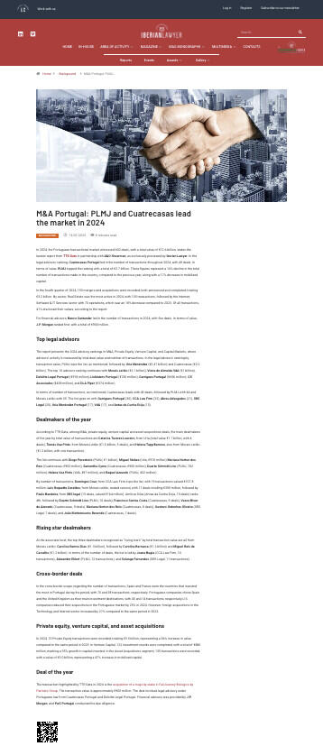 M&A Portugal: PLMJ and Cuatrecasas lead the market in 2024