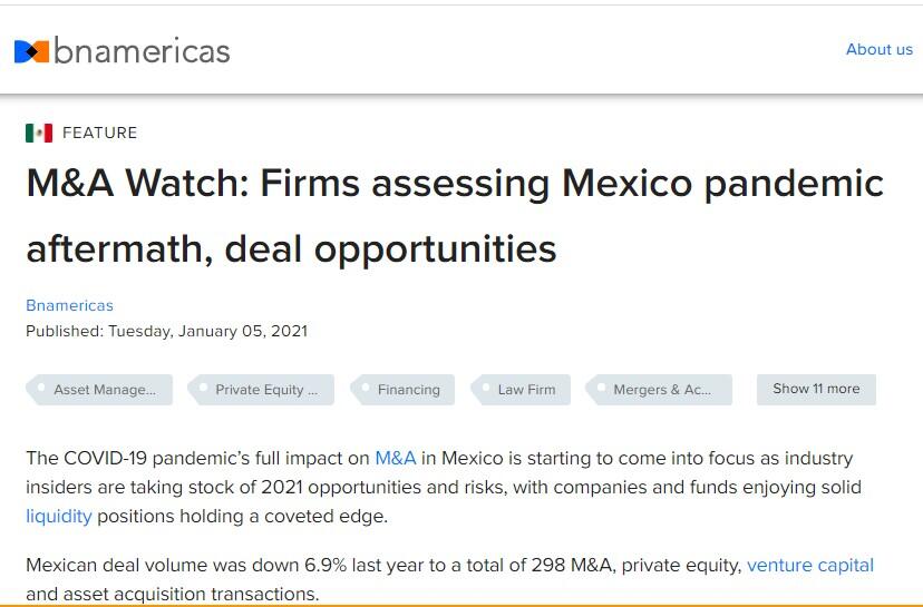 The COVID-19 pandemic’s full impact on M&A in Mexico is starting to come into focus as industry insiders are taking stock of 2021 opportunities and risks, with companies and funds enjoying solid liquidity positions holding a coveted edge.