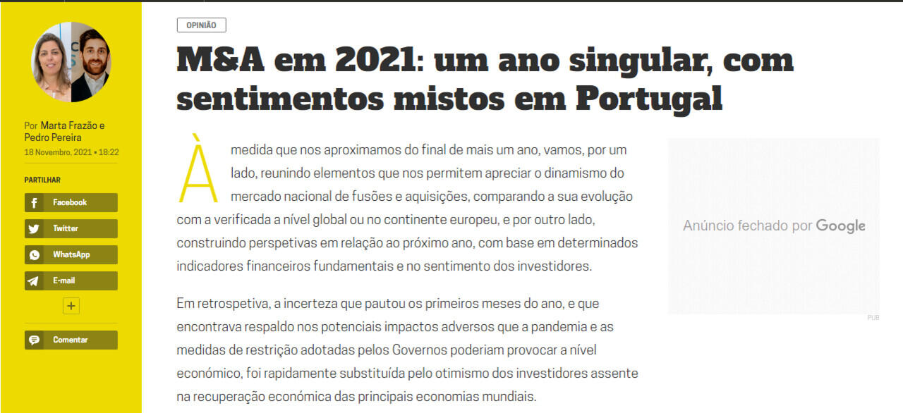 M&A em 2021: um ano singular, com sentimentos mistos em Portugal