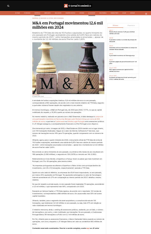 M&A em Portugal movimentou 12,6 mil milhões em 2024