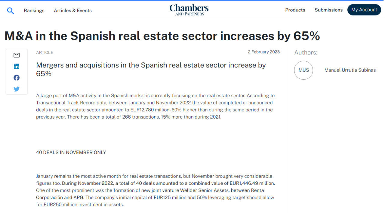 M&A in the Spanish real estate sector increases by 65%