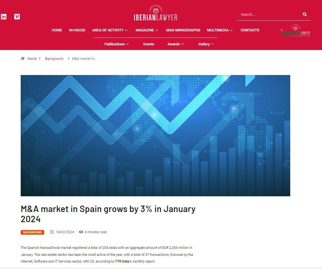M&A market in Spain grows by 3% in January 2024