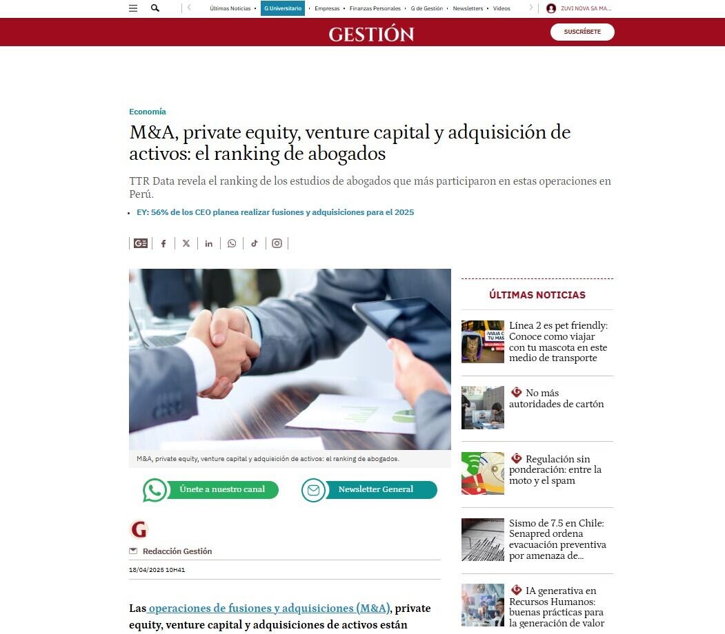 TTR Data revela el ranking de los estudios de abogados que más participaron en estas operaciones en Perú.