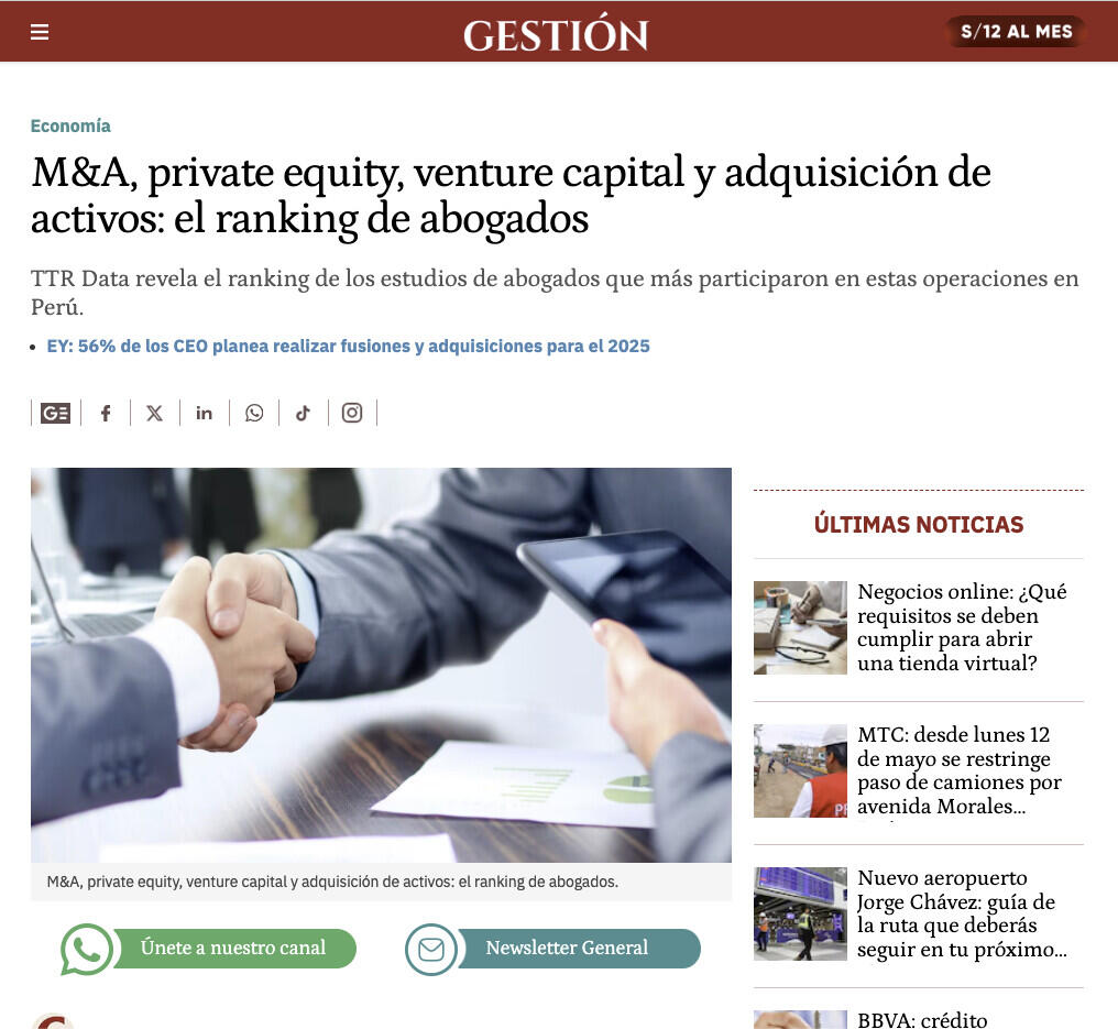 TTR Data revela el ranking de los estudios de abogados que más participaron en estas operaciones en Perú.