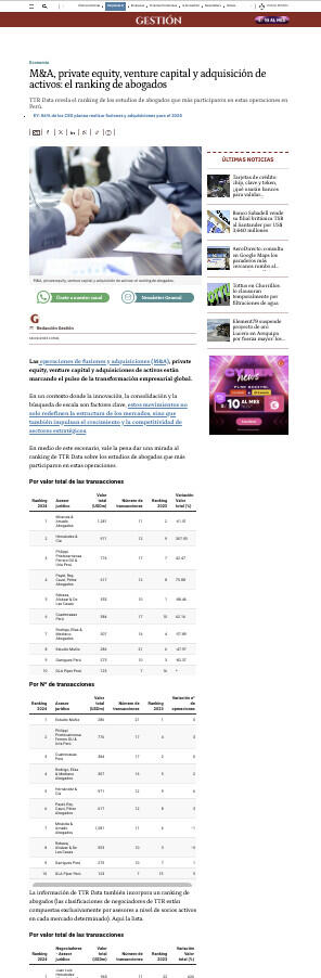 En medio de este escenario, vale la pena dar una mirada al ranking de TTR Data sobre los estudios de abogados que más participaron en estas operaciones.