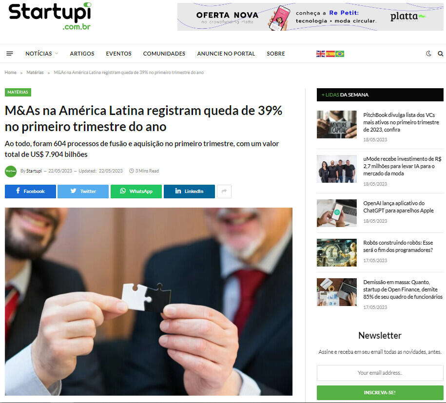 Segundo especialistas, 2023 começou devagar para o mercado de M&As – reflexo de eventos globais como o aumento das taxas de juros, inflação e conflitos geopolíticos, além de fenômenos mais localizados, como o baixo nível de crescimento econômico em alguns países e mudanças políticas recentes importantes na América Latina.