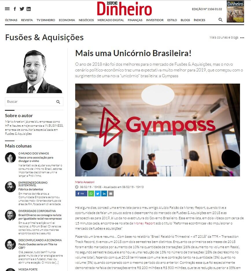 O ano de 2018 não foi dos melhores para o mercado de Fusões & Aquisições, mas o novo cenário político-econômico traz uma expectativa muito melhor para 2019, que começou com o surgimento de uma nova “unicórnio” brasileira: a Gympass