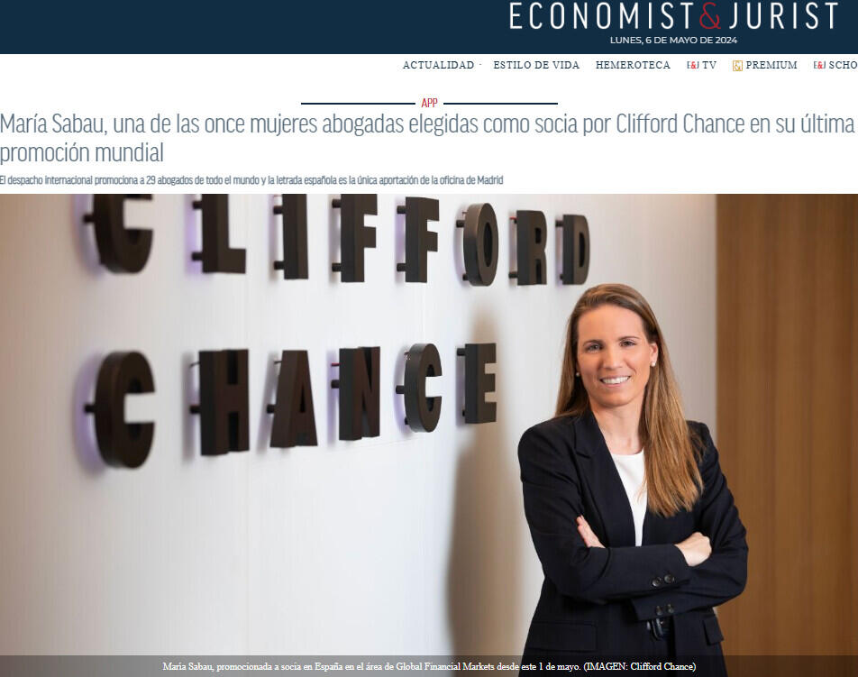 María Sabau, una de las once mujeres abogadas elegidas como socia por Clifford Chance en su última promoción mundial