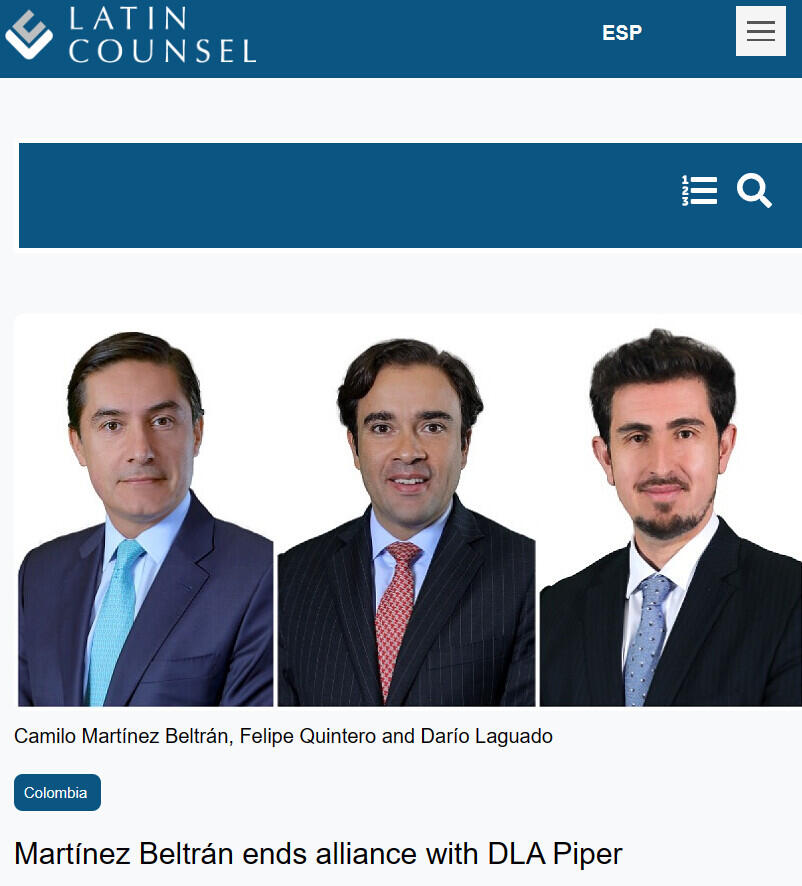 According to the Colombian firm "The relationship between both firms has always been, and remains, exceptionally positive and productive. Going forward, DLA Piper and Martínez Beltrán will continue to closely collaborate on client matters where appropriate, signifying the continuation of their strong working relationship to serve clients in the Colombian market. Both firms are committed to no disruption to client quality service during the transition".