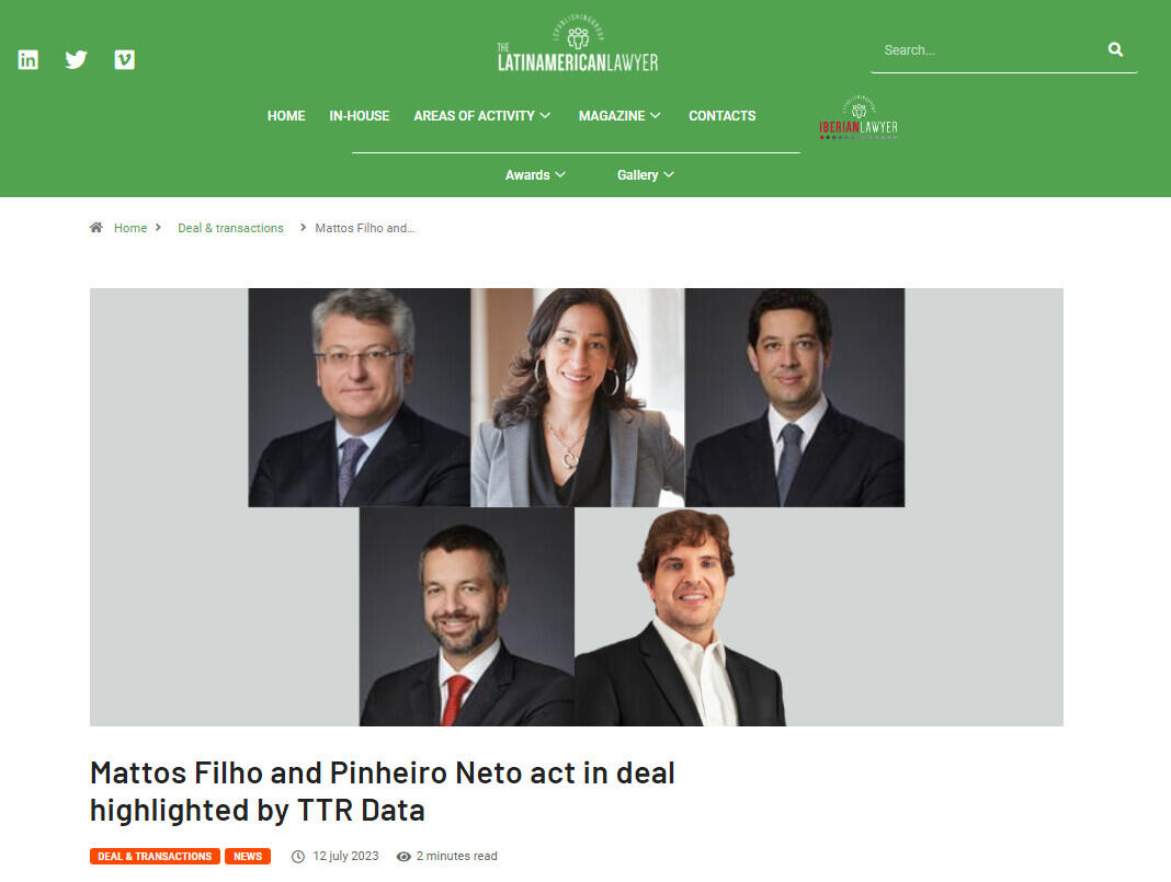 Mattos Filho and Pinheiro Neto act in deal highlighted by TTR Data