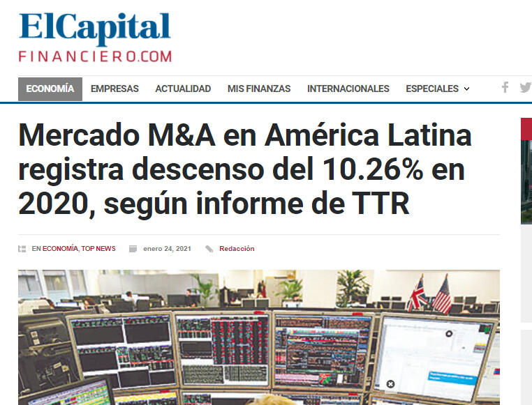 Mercado M&A en América Latina registra descenso del 10.26% en 2020, según informe de TTR