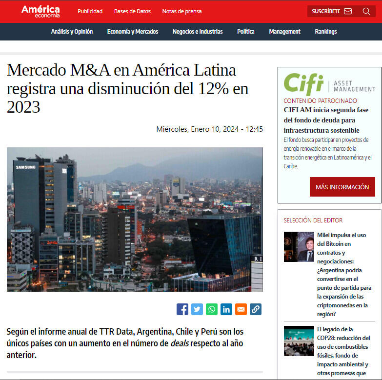 Mercado M&A en América Latina registra una disminución del 12% en 2023