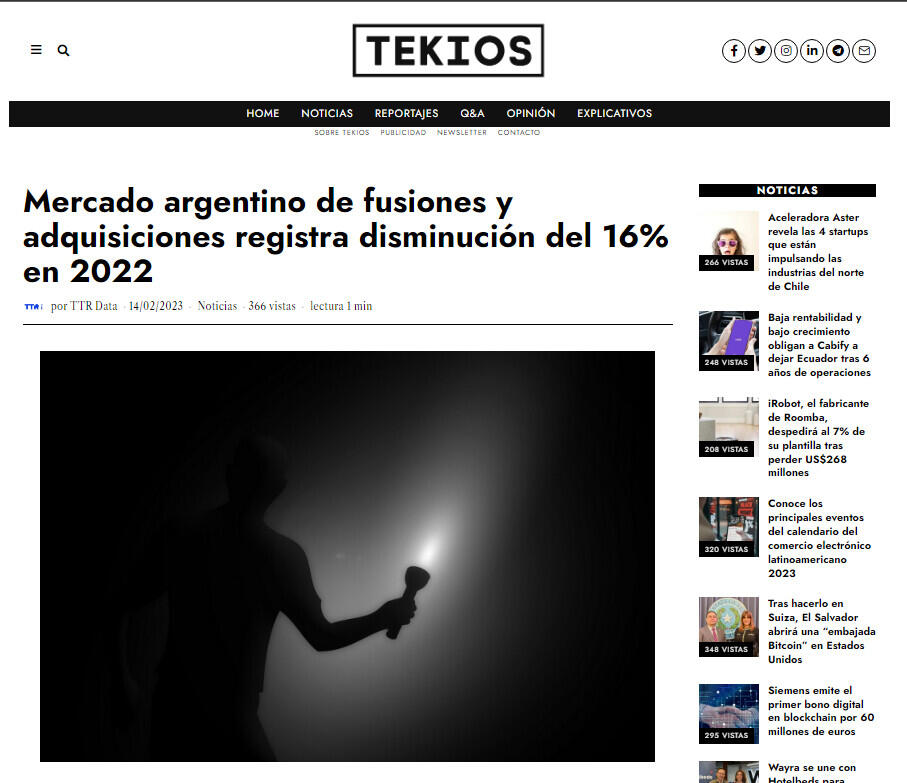 Mercado argentino de fusiones y adquisiciones registra disminución del 16% en 2022