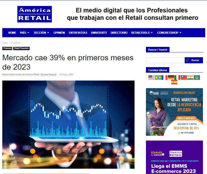 Mercado cae 39% en primeros meses de 2023