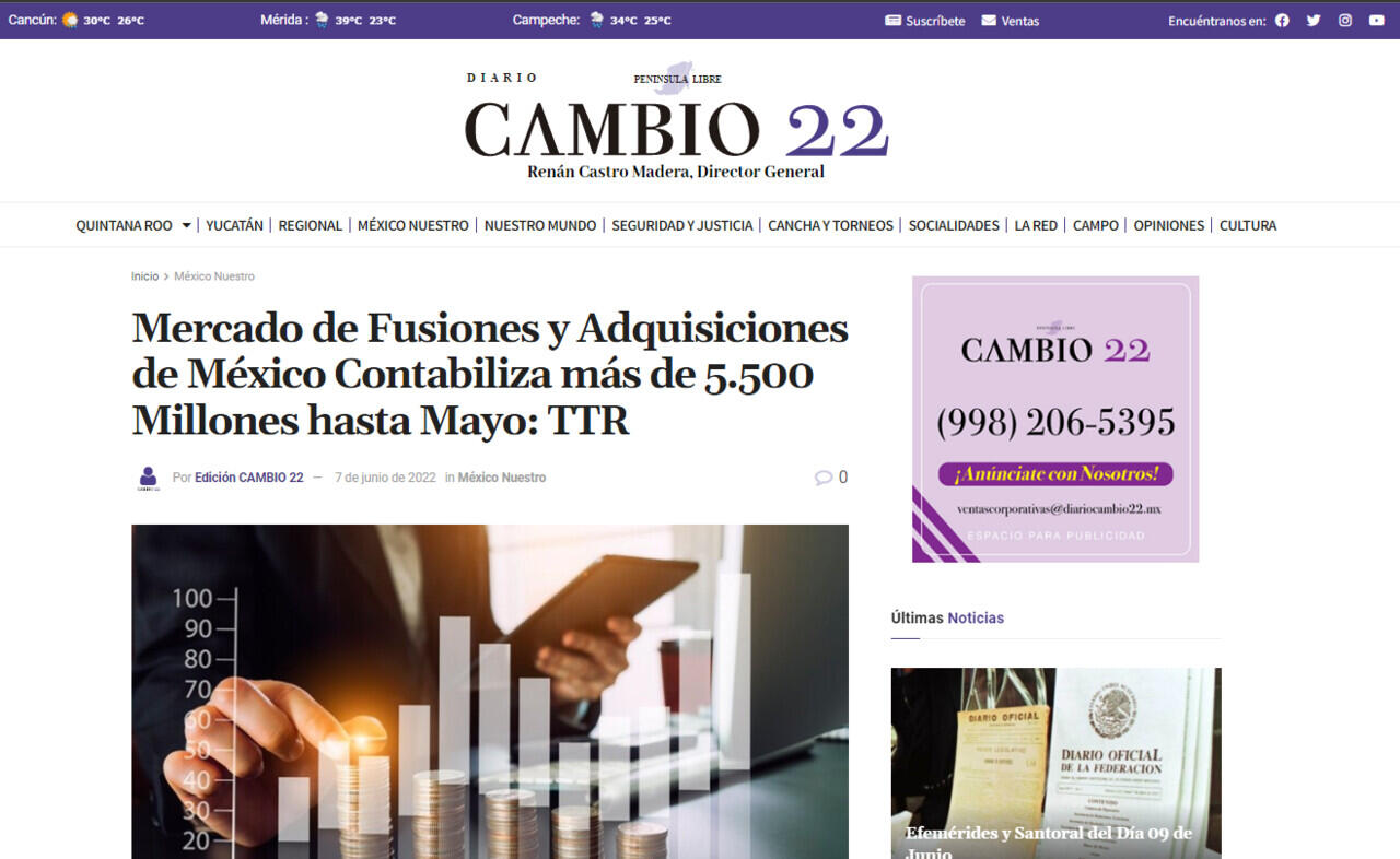 Mercado de Fusiones y Adquisiciones de México Contabiliza más de 5.500 Millones hasta Mayo: TTR
