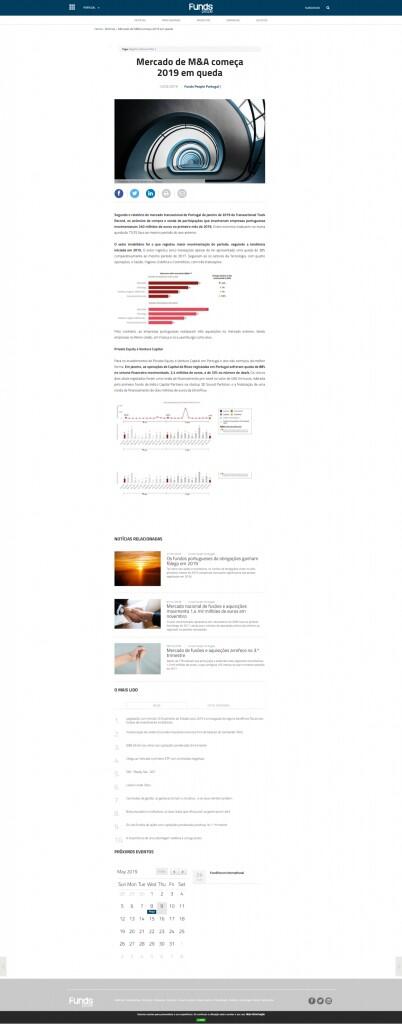 Segundo o relatório do mercado transacional de Portugal de janeiro de 2019 da Transactional Track Record, os anúncios de compra e venda de participações que envolveram empresas portuguesas movimentaram 240 milhões de euros no primeiro mês de 2019. Estes números traduzem-se numa queda de 73,5% face ao mesmo período do ano anterior.