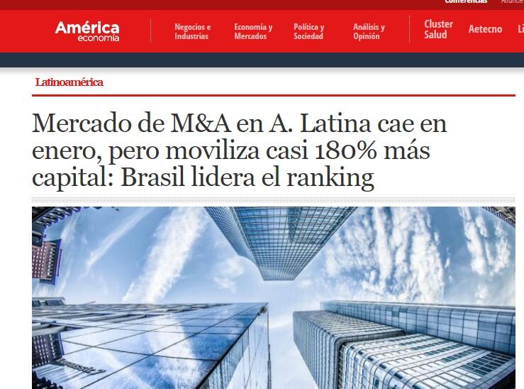 Según datos registrados en el mes de enero, Brasil lidera el ranking de países más activos de la región en M&A, con un aumento del 372% en el capital movilizado con US$ 10.510 millones, y un total de 68 operaciones (un 27% menos que el año anterior).