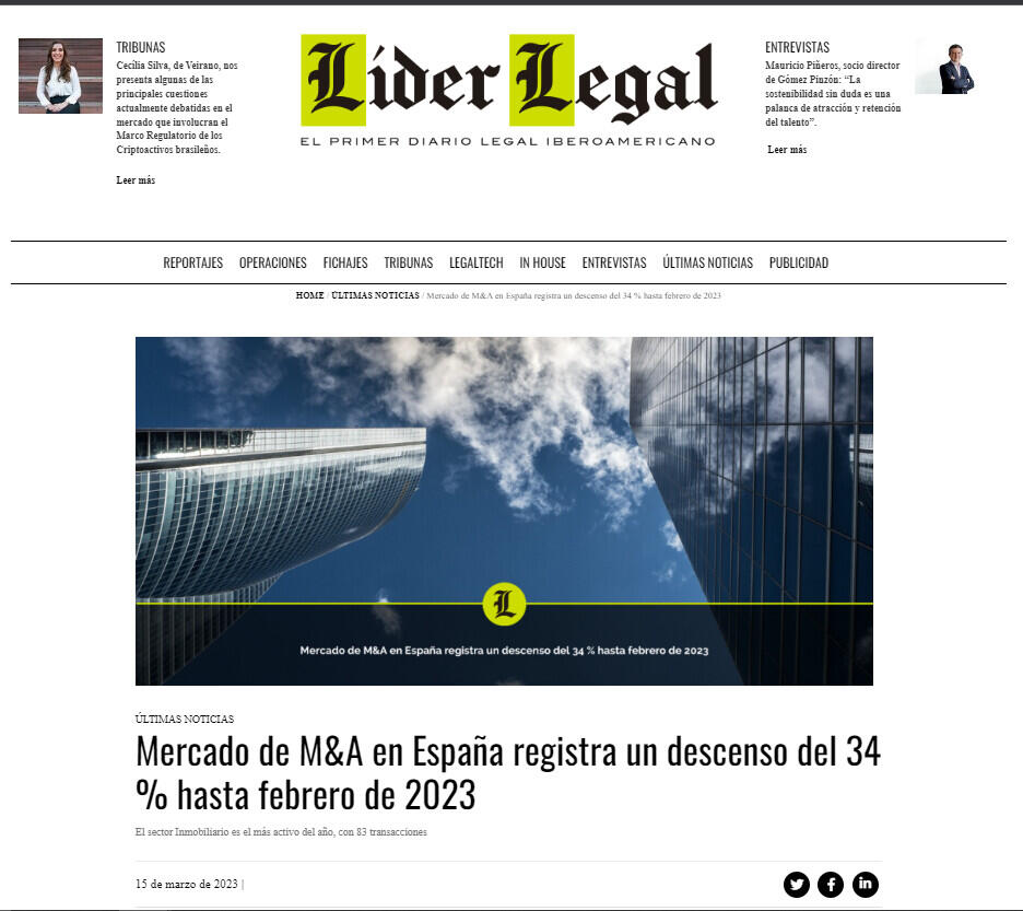 Mercado de M&A en España registra un descenso del 34% hasta febrero de 2023
