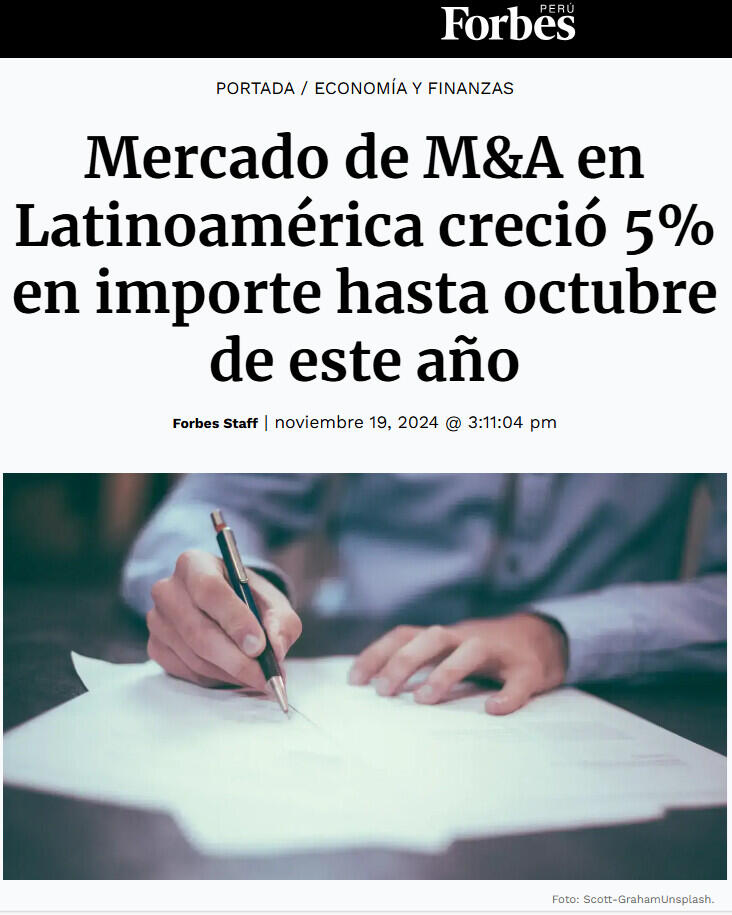 Mercado de M&A en Latinoamérica creció 5% en importe hasta octubre de este año