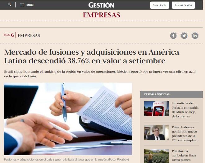 Mercado de fusiones y adquisiciones en América Latina descendió 38.76% en valor a septiembre
