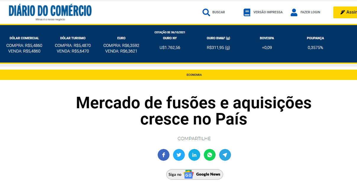 Leia mais: Mercado de fusões e aquisições cresce no País - Diário do Comércio Em: https://diariodocomercio.com.br/economia/280461