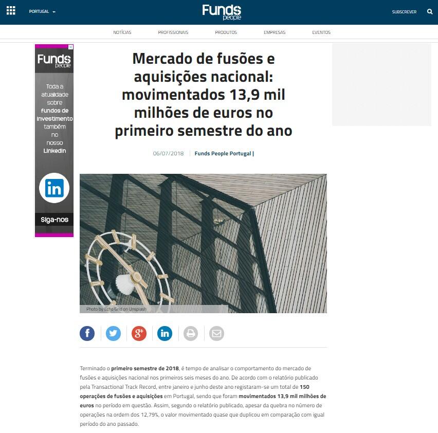 Terminado o primeiro semestre de 2018, é tempo de analisar o comportamento do mercado de fusões e aquisições nacional nos primeiros seis meses do ano. De acordo com o relatório publicado pela Transactional Track Record, entre janeiro e junho deste ano registaram-se um total de 150 operações de fusões e aquisições em Portugal, sendo que foram movimentados 13,9 mil milhões de euros no período em questão. Assim, segundo o relatório publicado, apesar da quebra no número de operações na ordem dos 12,79%, o valor movimentado quase que duplicou em comparação com igual período do ano passado.