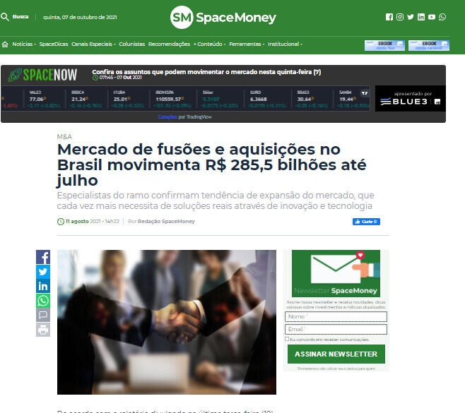 De acordo com o relatório divulgado na última terça-feira (10) pela plataforma Transactional Track Record (TTR), o mercado de fusões e aquisições (M&As) no país registrou um total de 1.169 transações até o mês de julho e movimentou R$ 285,5 bilhões desde o início do ano. Um aumento de 50% em relação ao mesmo período de 2020.