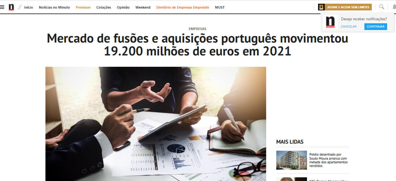 Mercado de fusões e aquisições português movimentou 19.200 milhões de euros em 2021