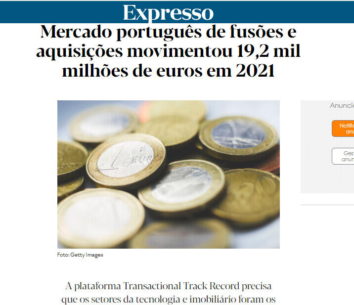 Mercado português de fusões e aquisições movimentou 19,2 mil milhões de euros em 2021