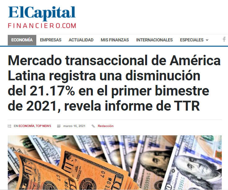 Mercado transaccional de América Latina registra una disminución del 21.17% en el primer bimestre de 2021, revela informe de TTR